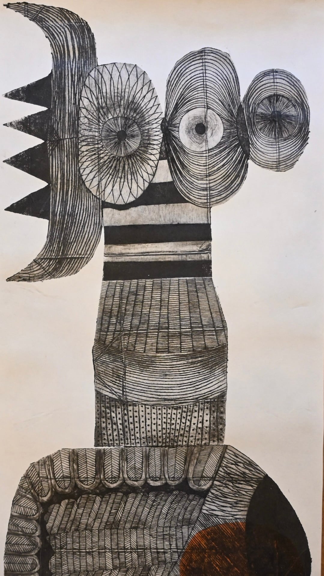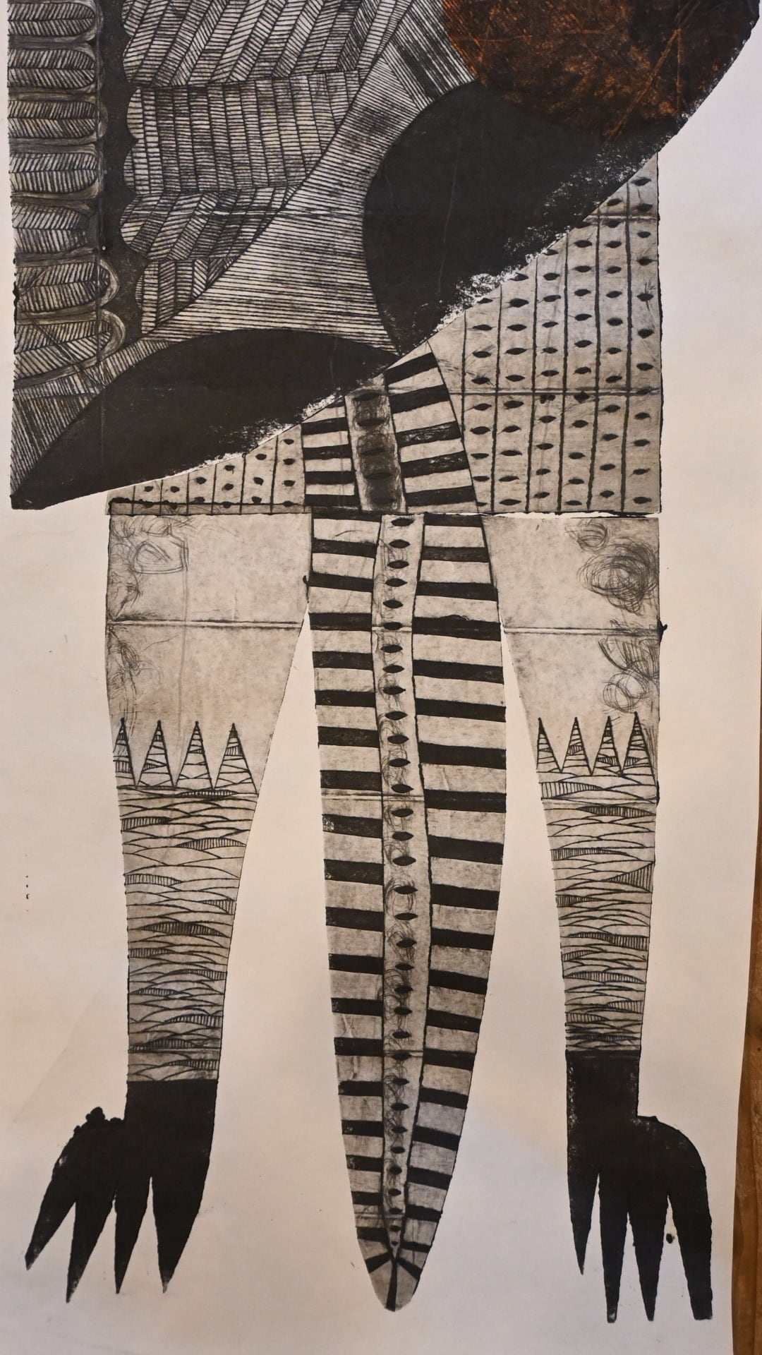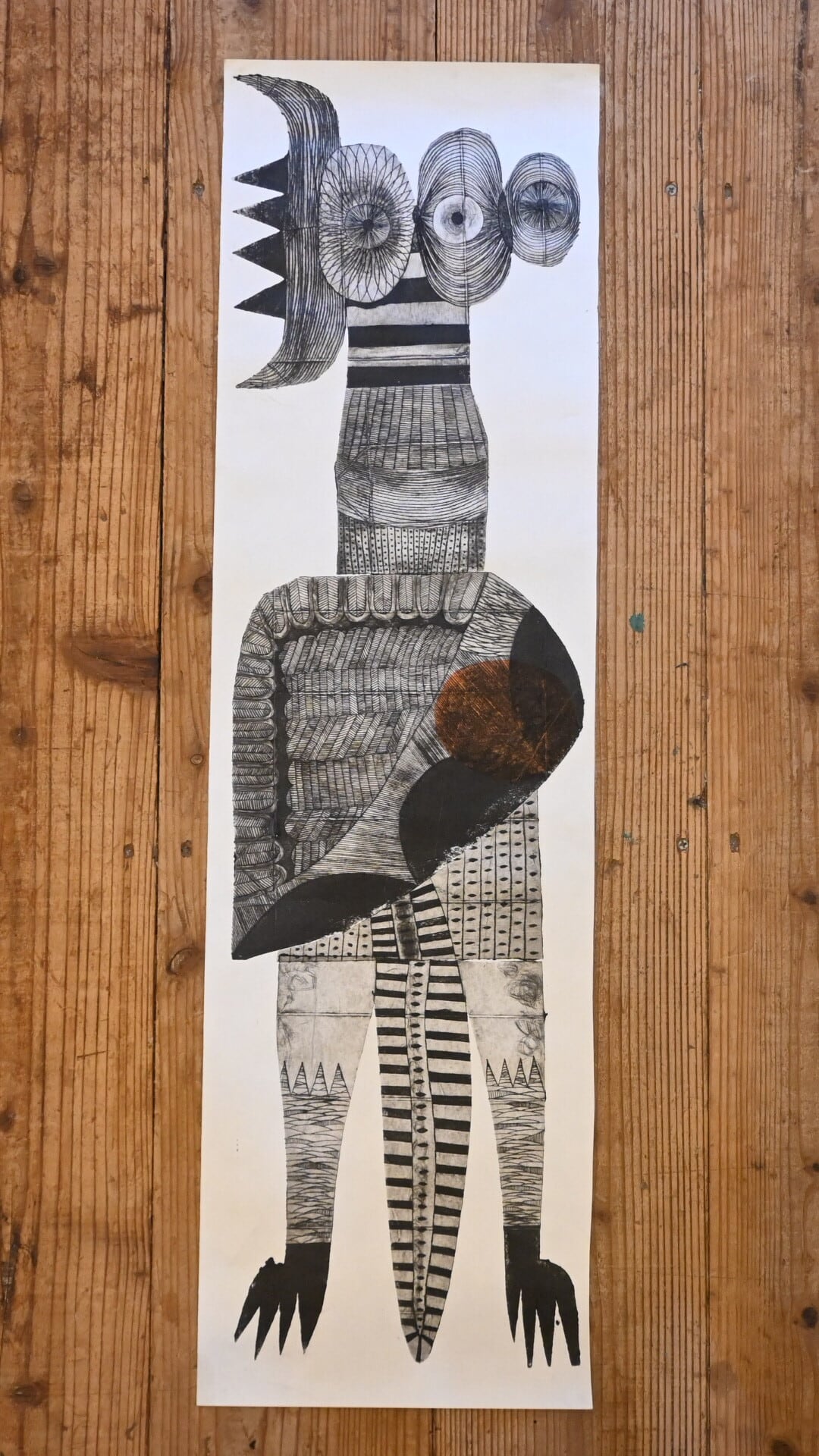 ドライポイント版画を用いた一点物のコラージュ作品です。