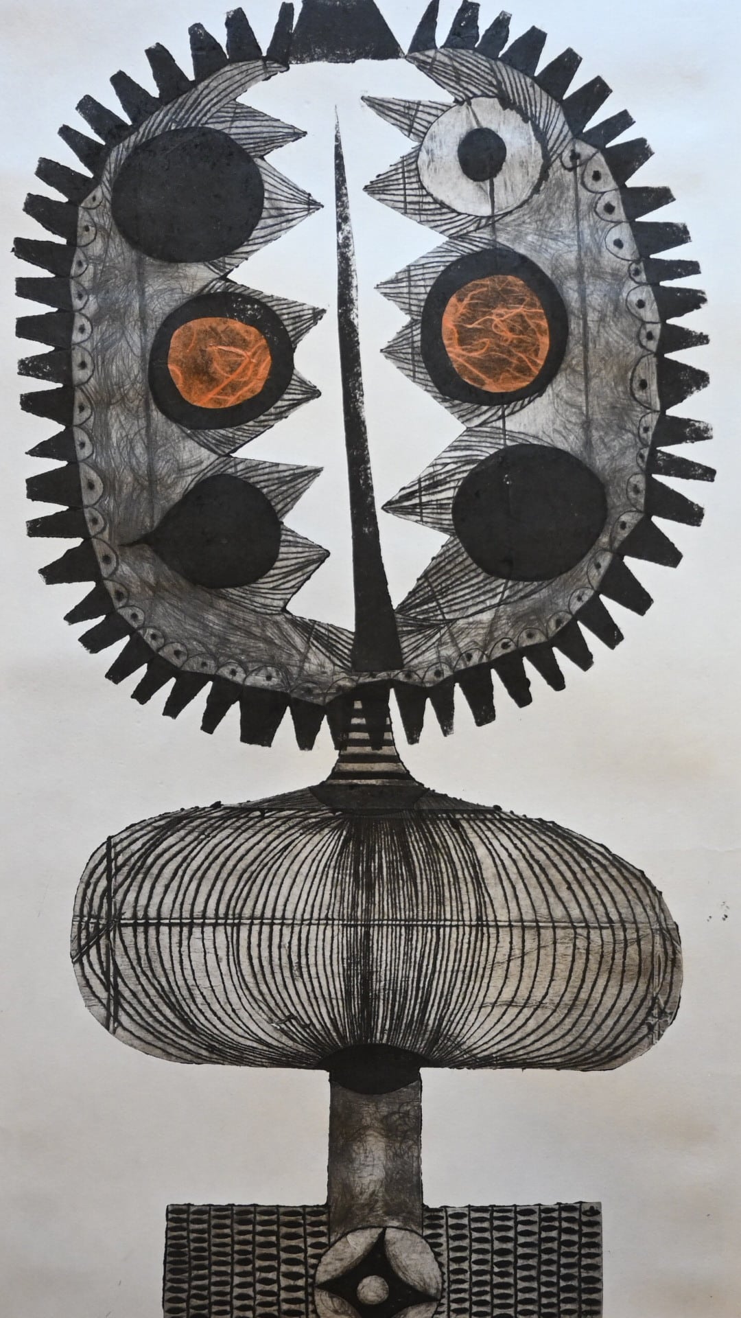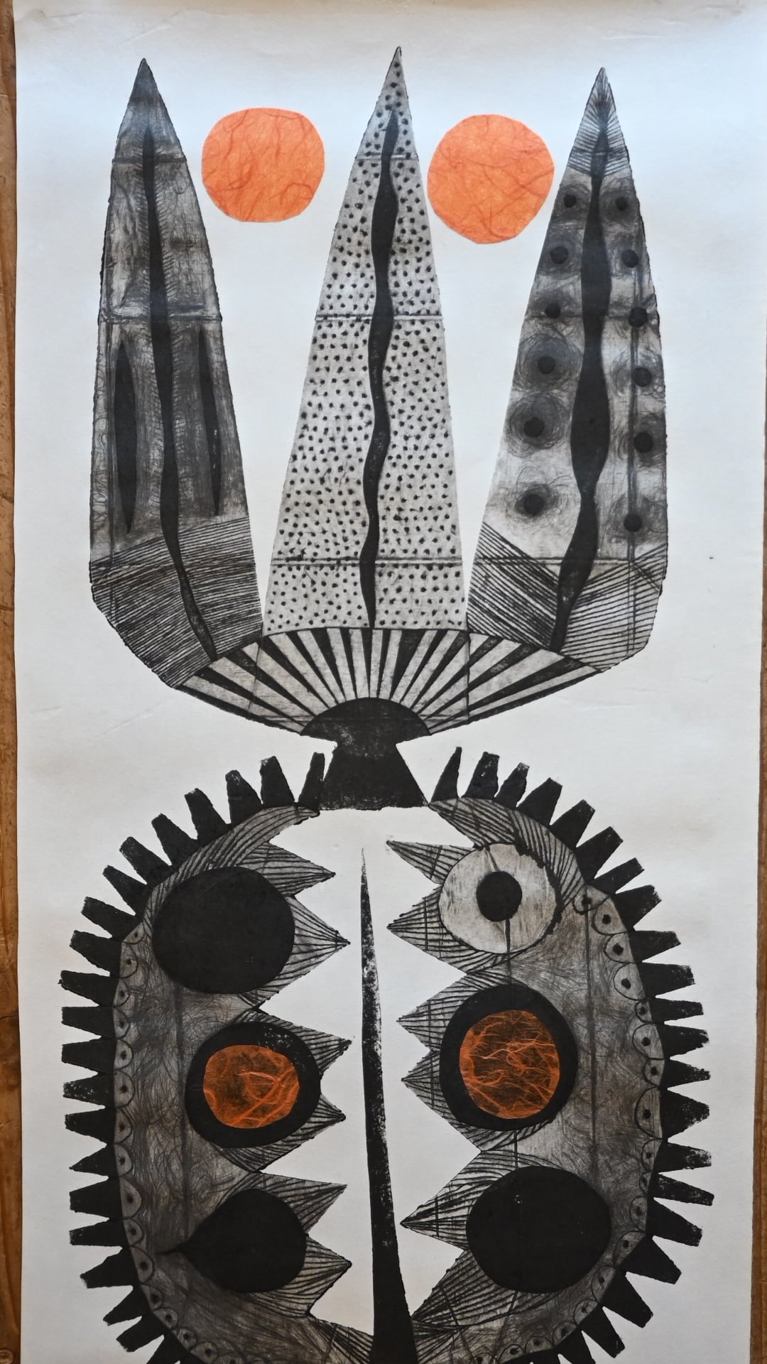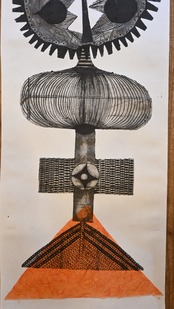 ドライポイント版画を用いた一点物のコラージュ作品です。