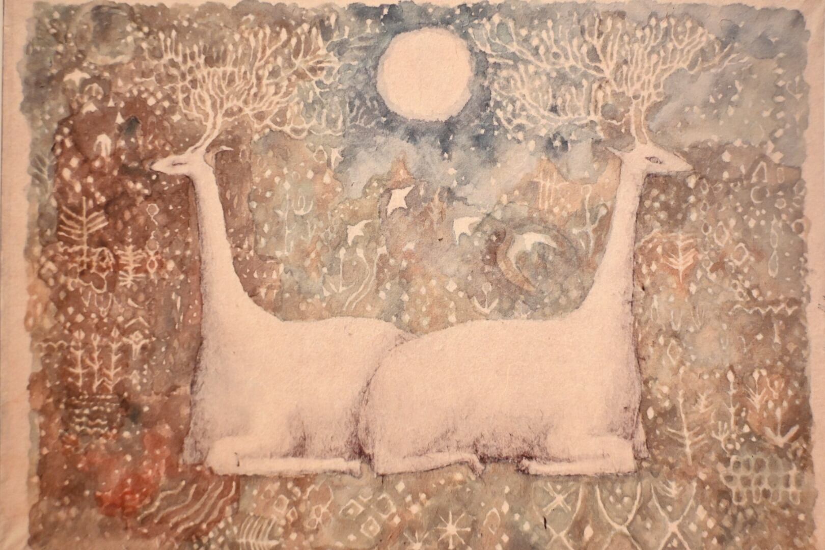 「星々を巡る者」(1枚目下)※原画:和紙、透明水彩、鉛筆/2025