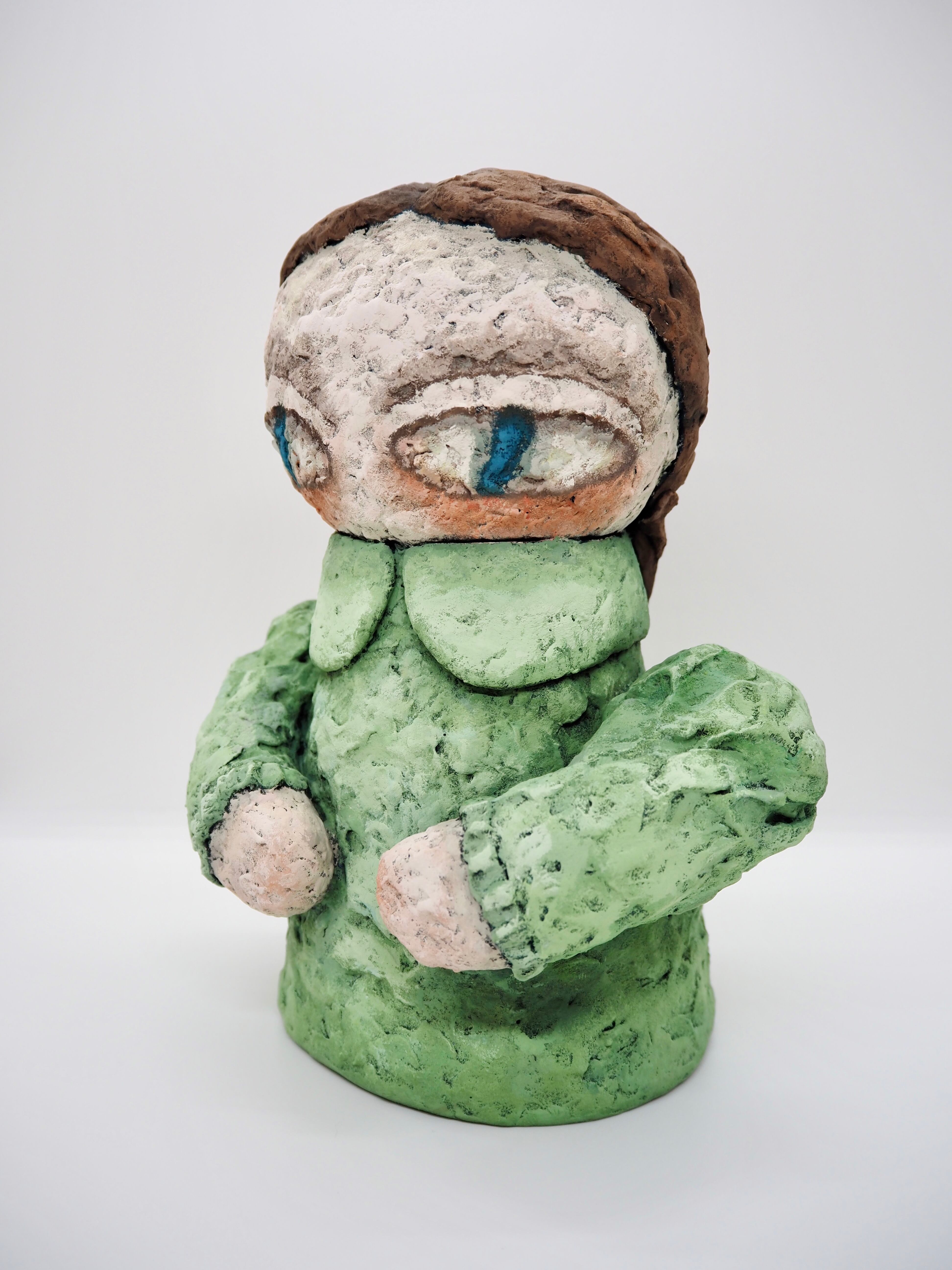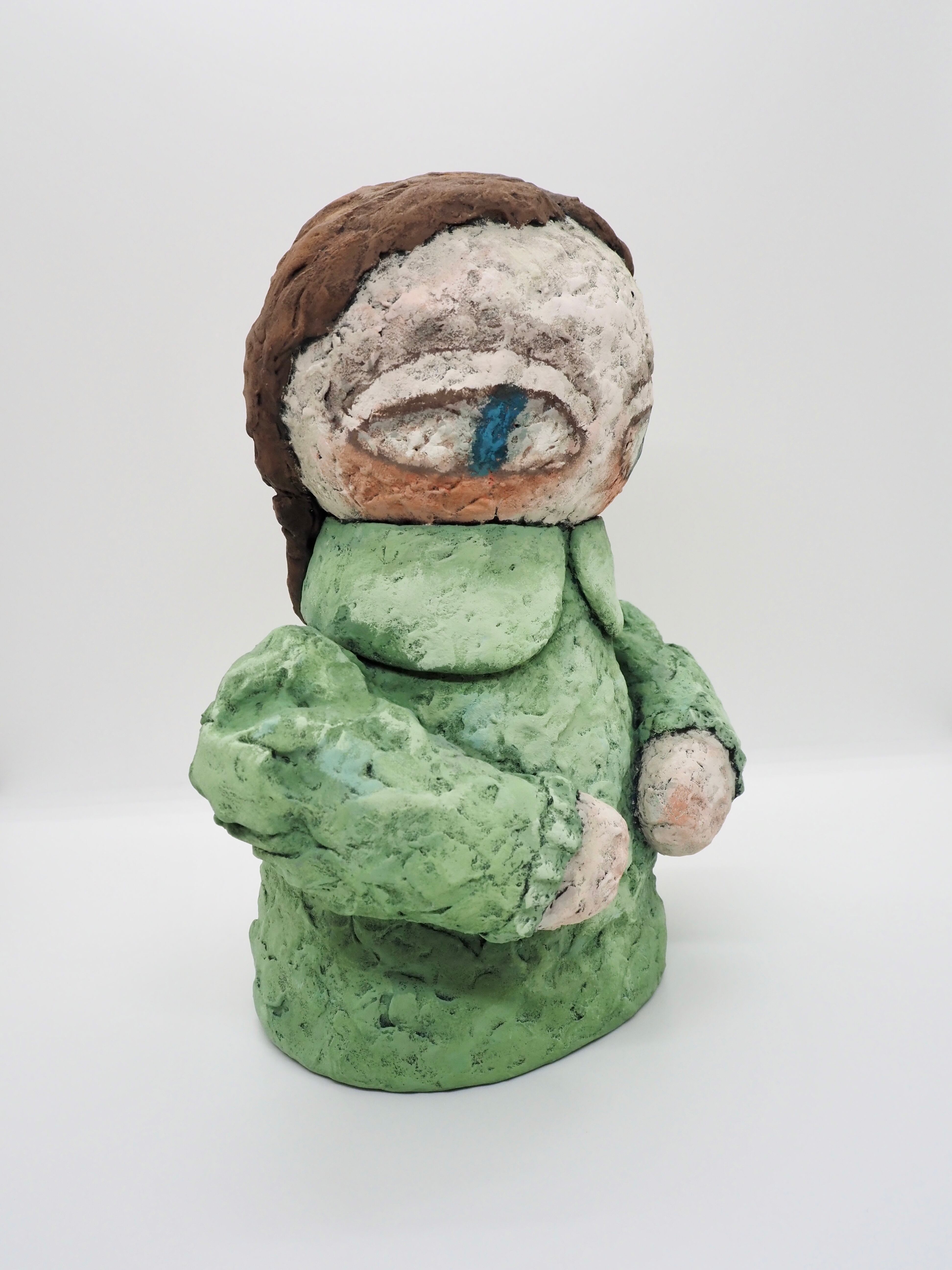紙粘土を用いて独特のテクスチャーが出るように制作された一点物の立体作品です。