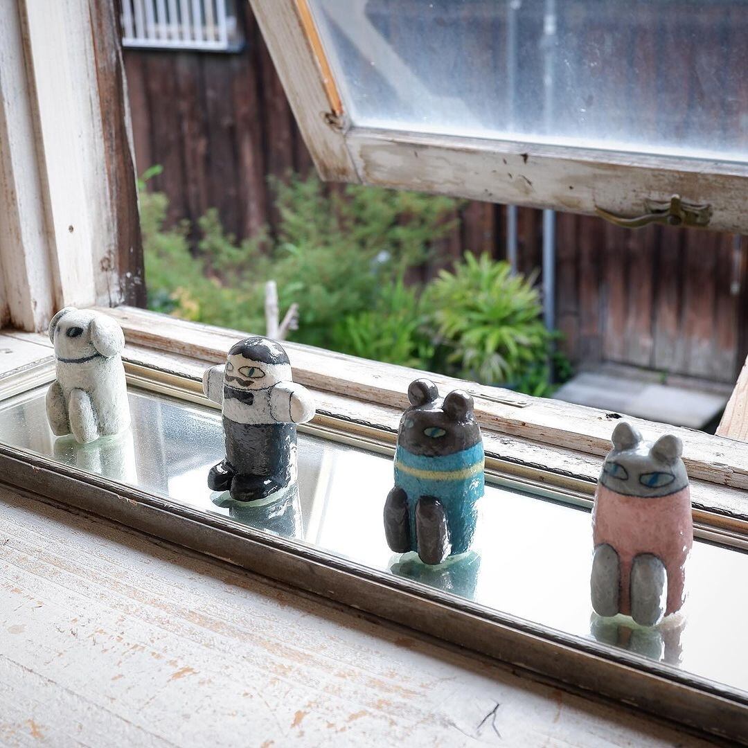 石粉粘土を用いて仕上げに分厚くニスを塗って制作された一点物の立体作品です。