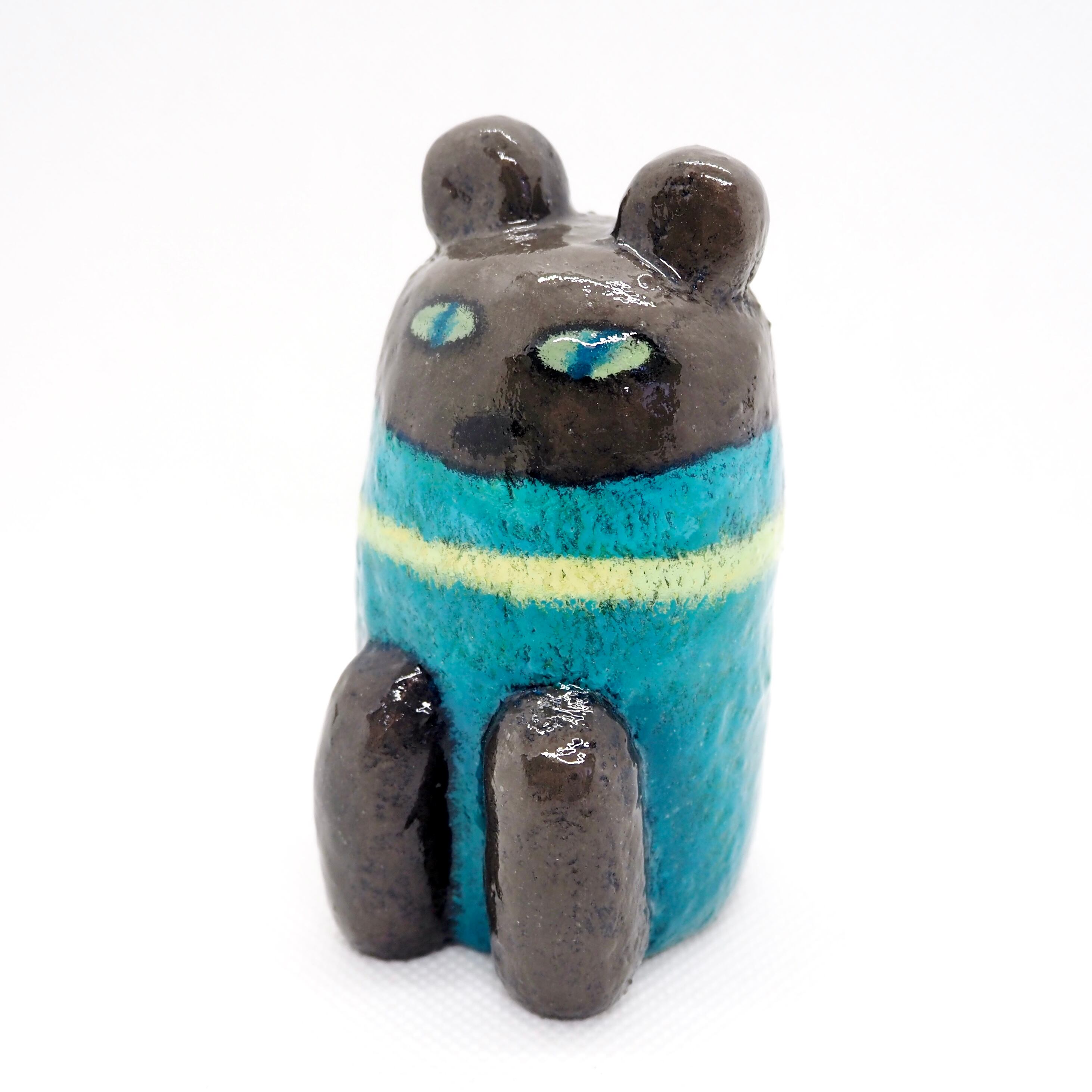 石粉粘土を用いて仕上げに分厚くニスを塗って制作された一点物の立体作品です。