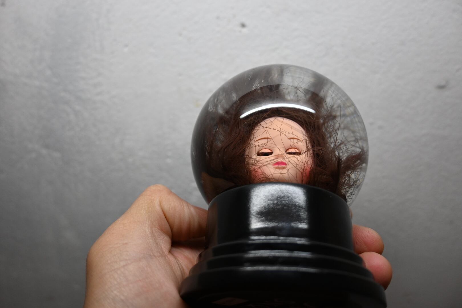 前後のストーリーを想像したくなるスノードーム作品を制作。